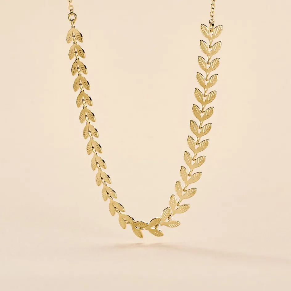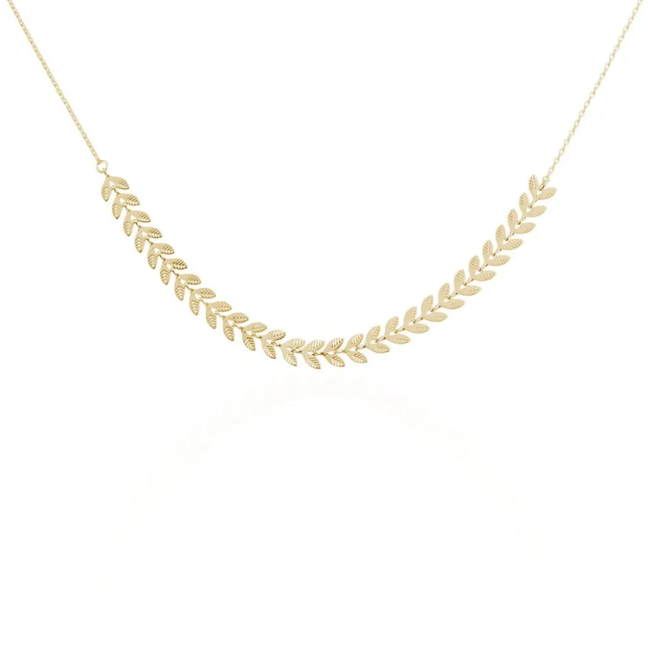 Collier Plaque Or Jaune Motifs Feuilles 42cm