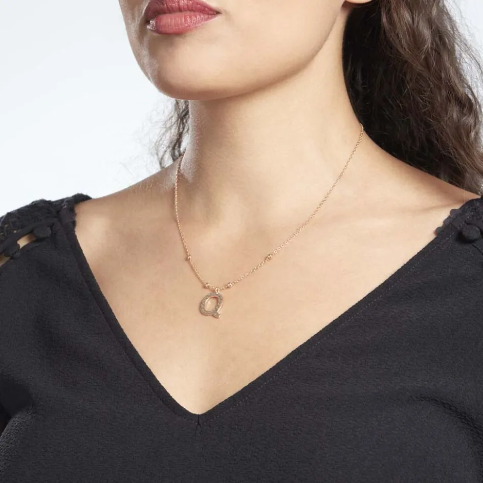 Collier Plaque Or Jaune Lettre Q Martelee Et Petites Boules Chaine Maille Forcat Longueur 45cm