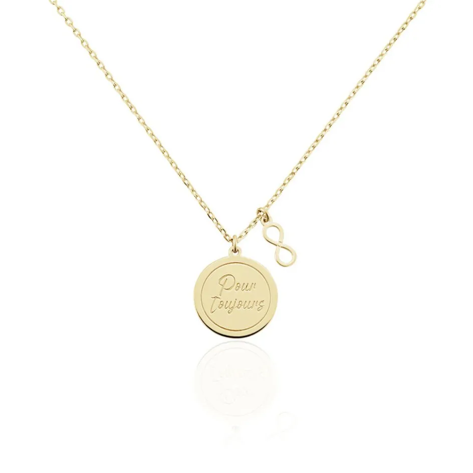 Collier Plaqué Or Jaune Pastille Gravée Pour Toujours Pampille Infini Maille Forcat 45cm