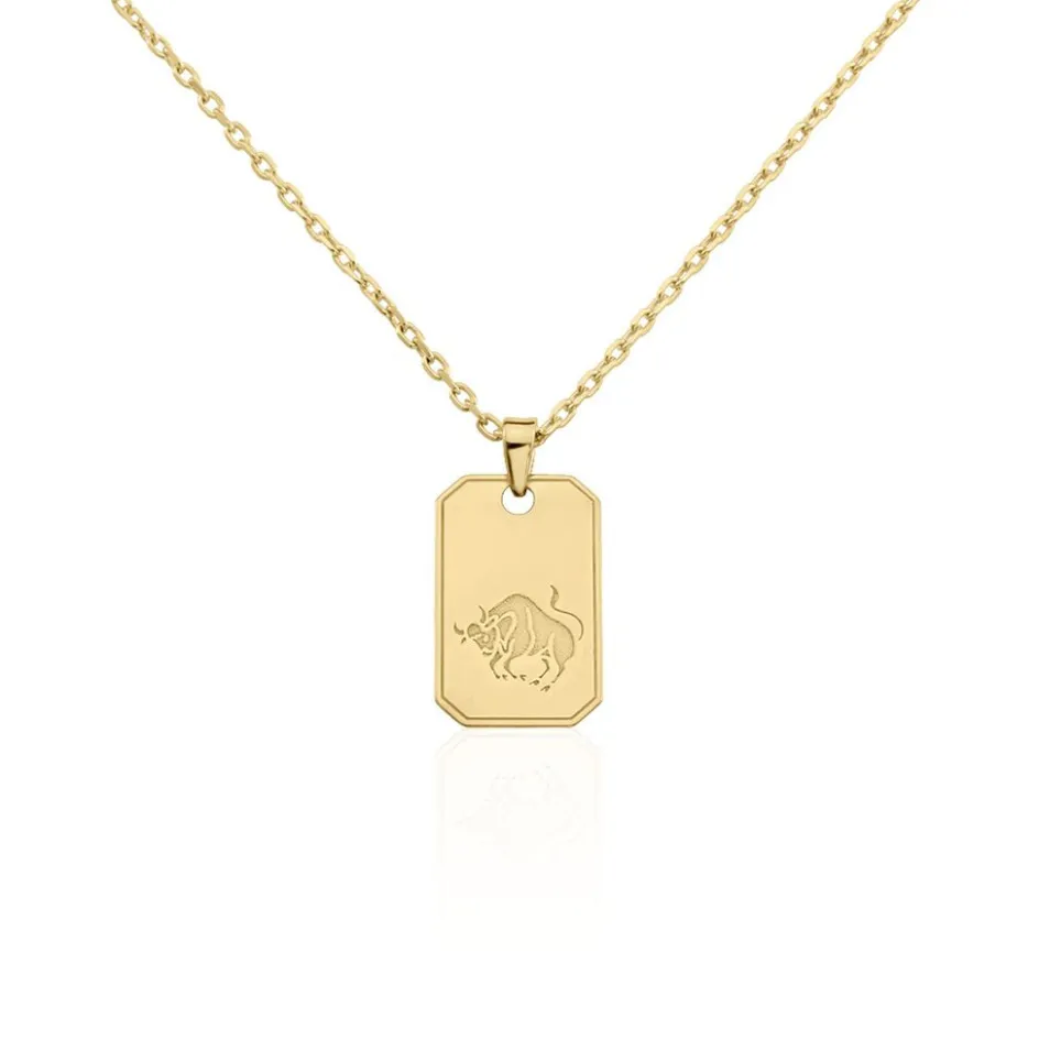 Collier Plaqué Or Jaune Plaque Gravee Signe Astrologique Taureau Maille Forcat 50cm