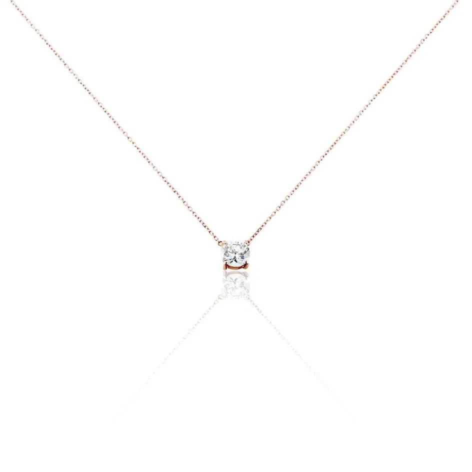 Collier Or Rose 375/1000 Maille Forçat Oxyde De Zirconium 4mm Pm 42cm