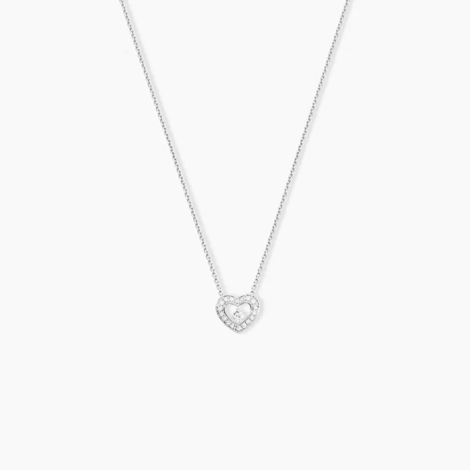 Collier Or Blanc 375/1000 Maille Forçat Pureté C艙ur Diamant Pavage Diamants 42cm