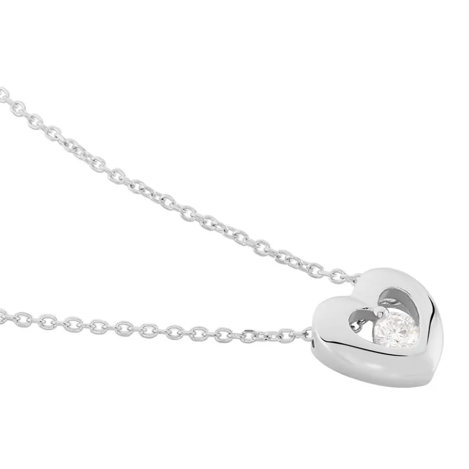 Collier Or Blanc 375/1000 Malle Forçat Pureté C艙ur Diamant 42cm