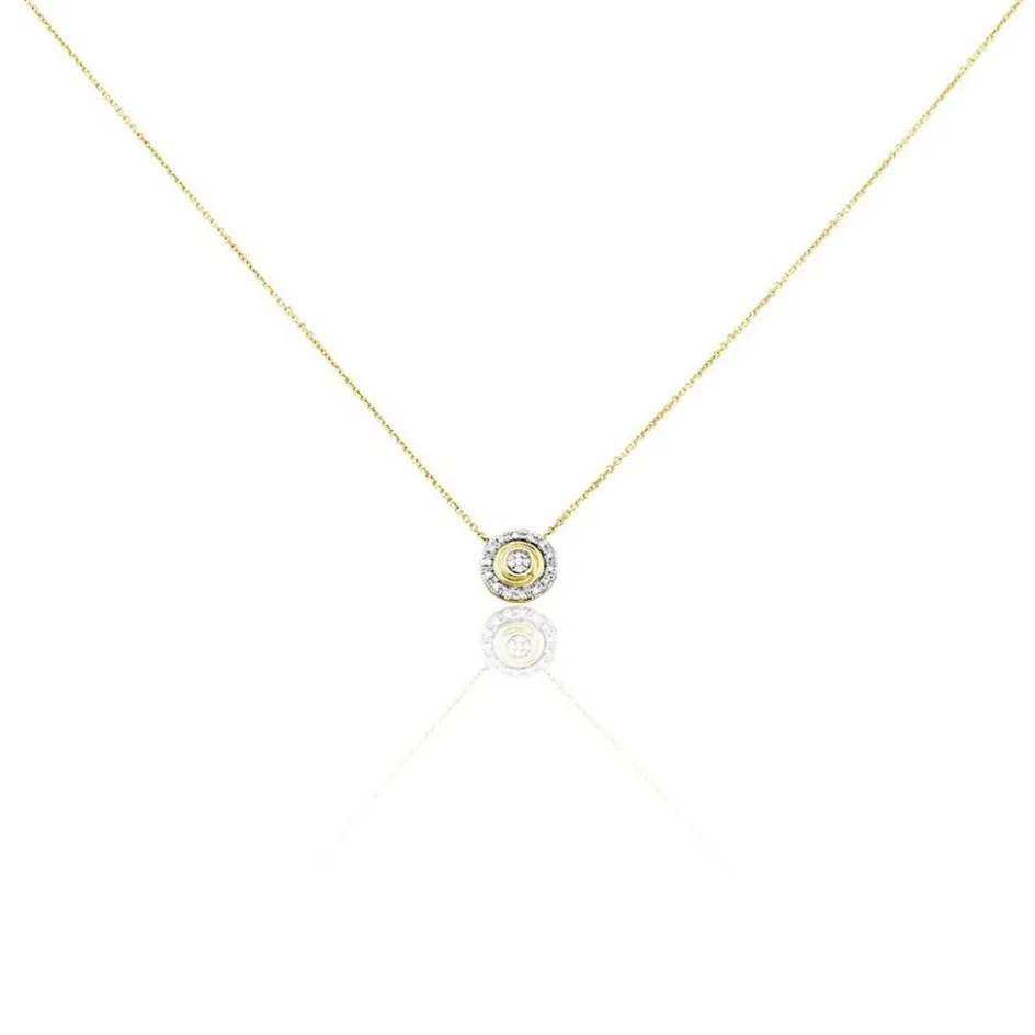 Collier Or Bicolore 375/1000 Entourage Diamants 40+2cm