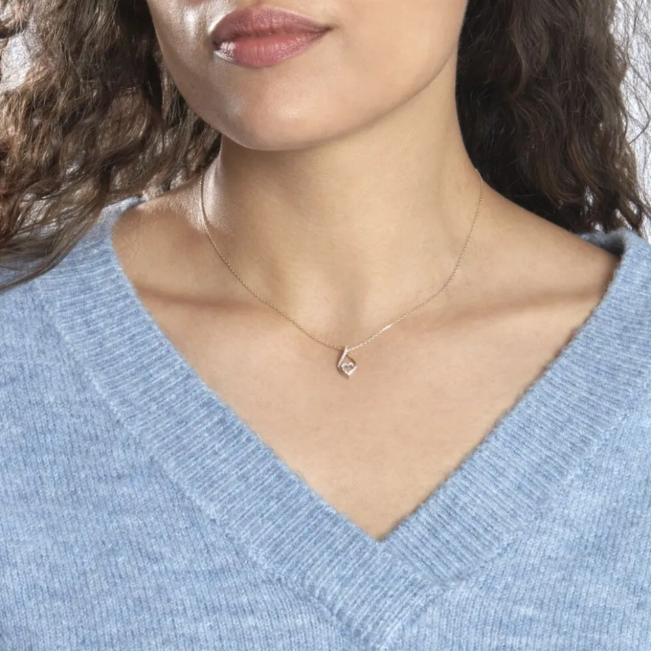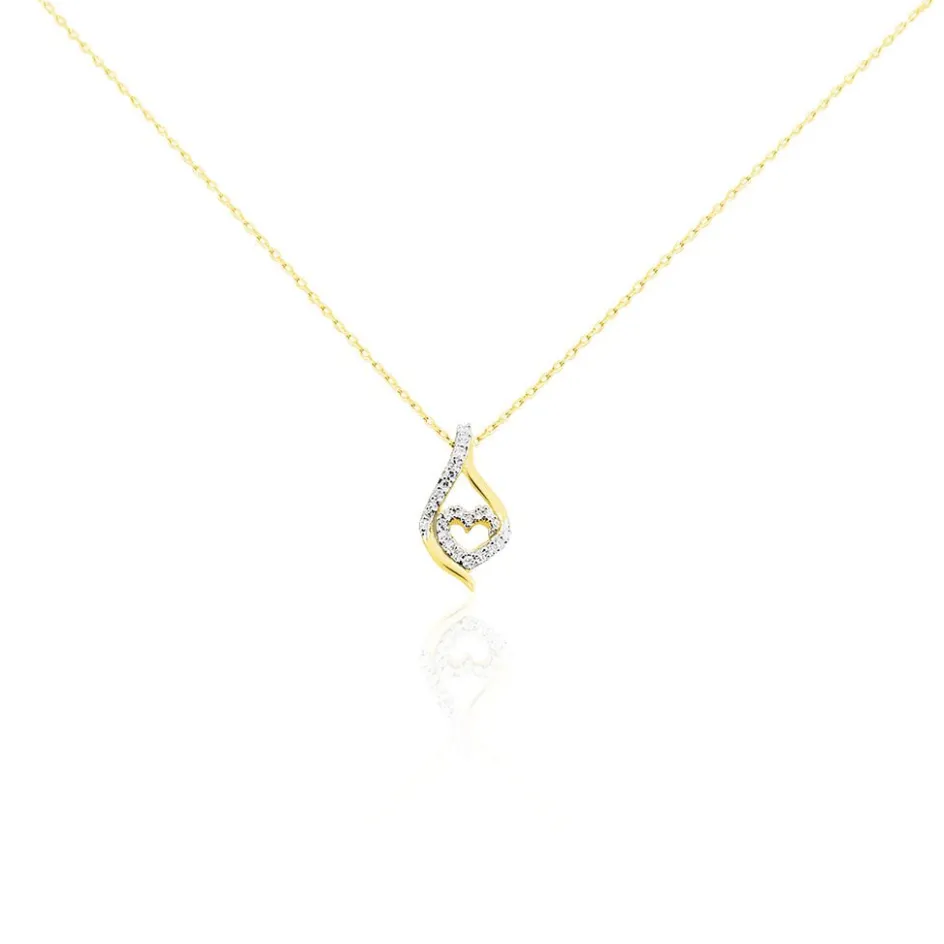 Collier Or Jaune 375/1000 Forme C艙ur Pavage Diamants 42cm