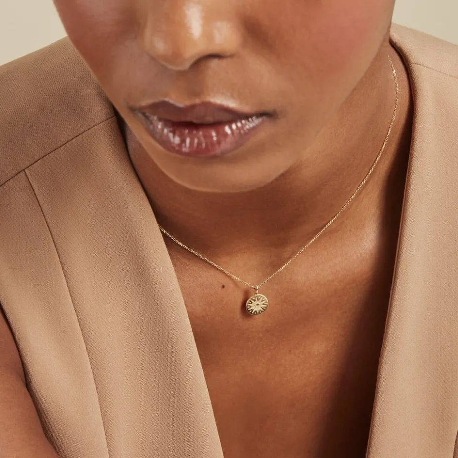 Collier Or Aune 375/1000 Pastille Soleil Et Lune Maille Jaseron 40+2cm