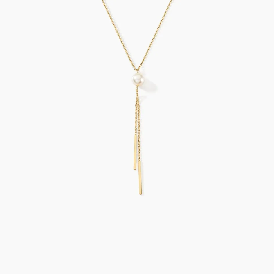 Collier Or Jaune 375/1000 Style Cravate Motifs Barres Pendantes Et Perle De Culture 42cm
