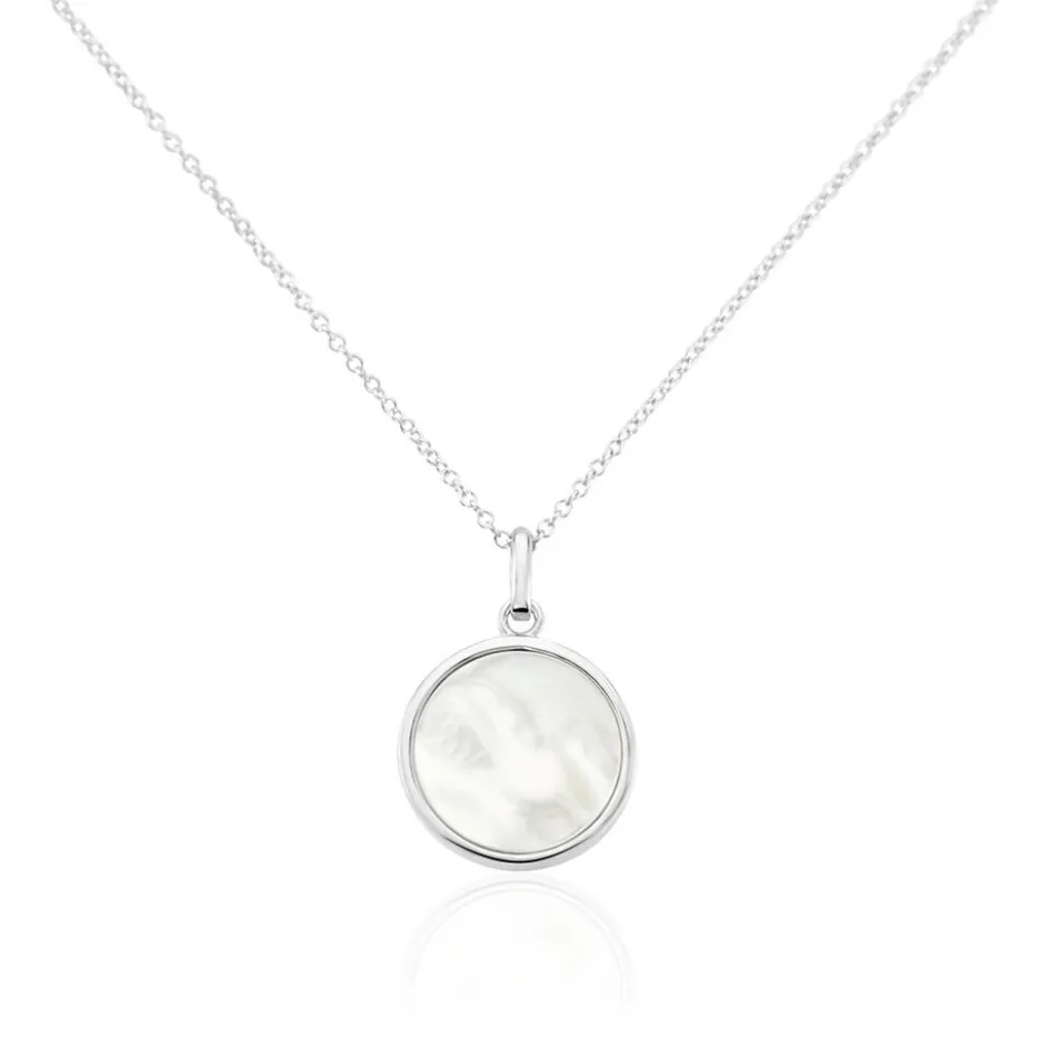 Collier Argent Blanc 925/1000 Nid Nacre Blanc 0.94 Cts Largeur 1mm 45cm