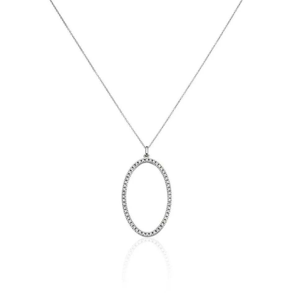 Collier Sautoir Argent 925/1000 Ovale Ajoure Pavage Oxydes De Zirconium Maille Forçat 70cm