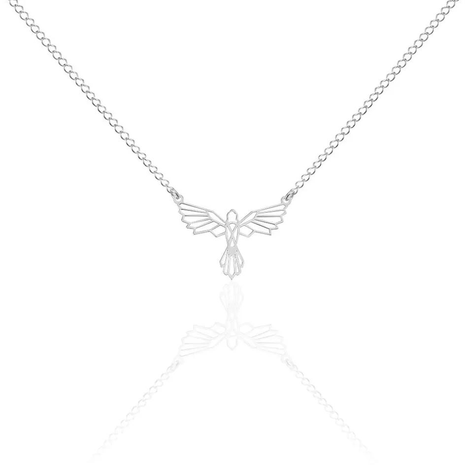 Collier Argent Blanc 925/1000 Oiseau Origami Ajoure 42cm