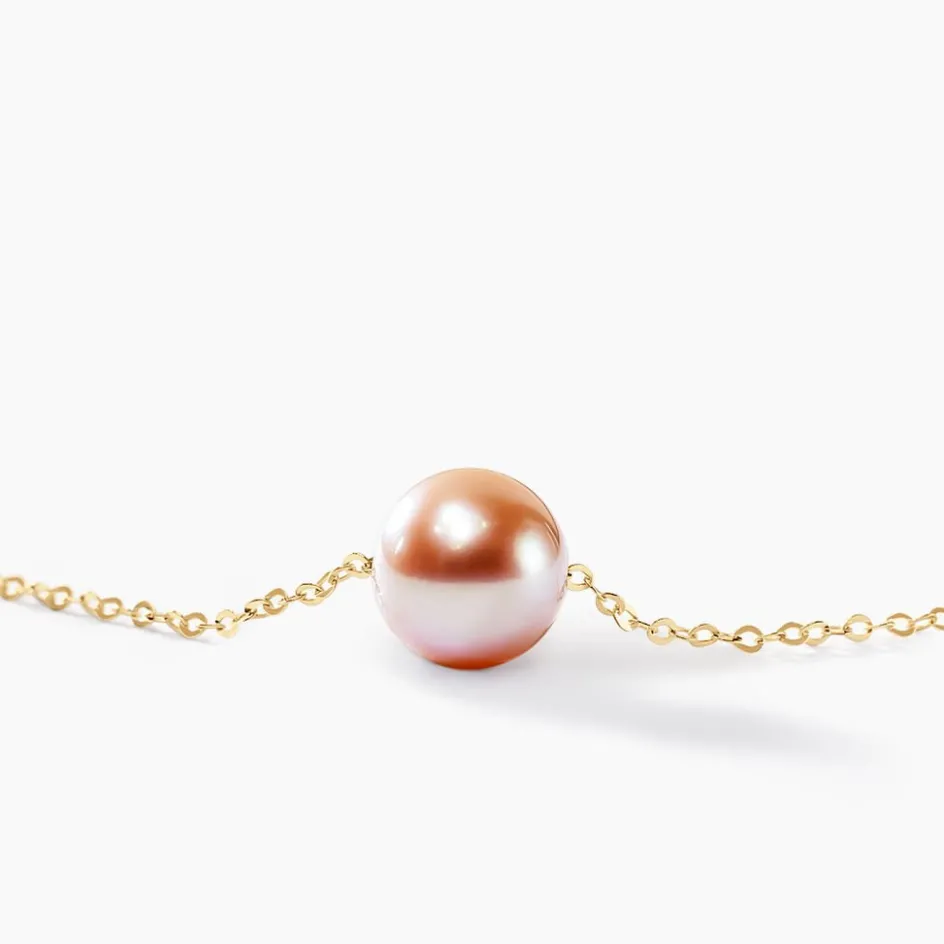 Collier Or Jaune 375/1000 Perle De Culture Ronde Rose 6.5/7mm 42cm