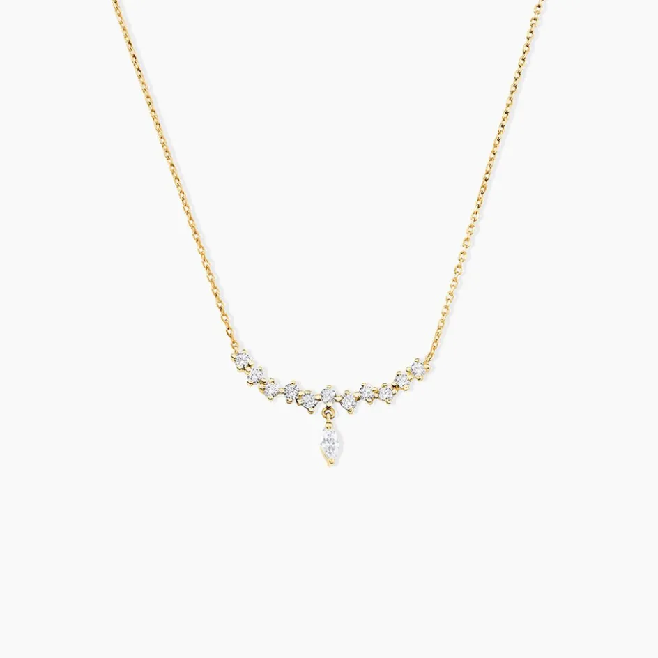Collier Or Jaune 375/1000 Oxyde De Zirconium Navettes Et Rondes Sertis Griffes Maille Forcat 40+2Cm