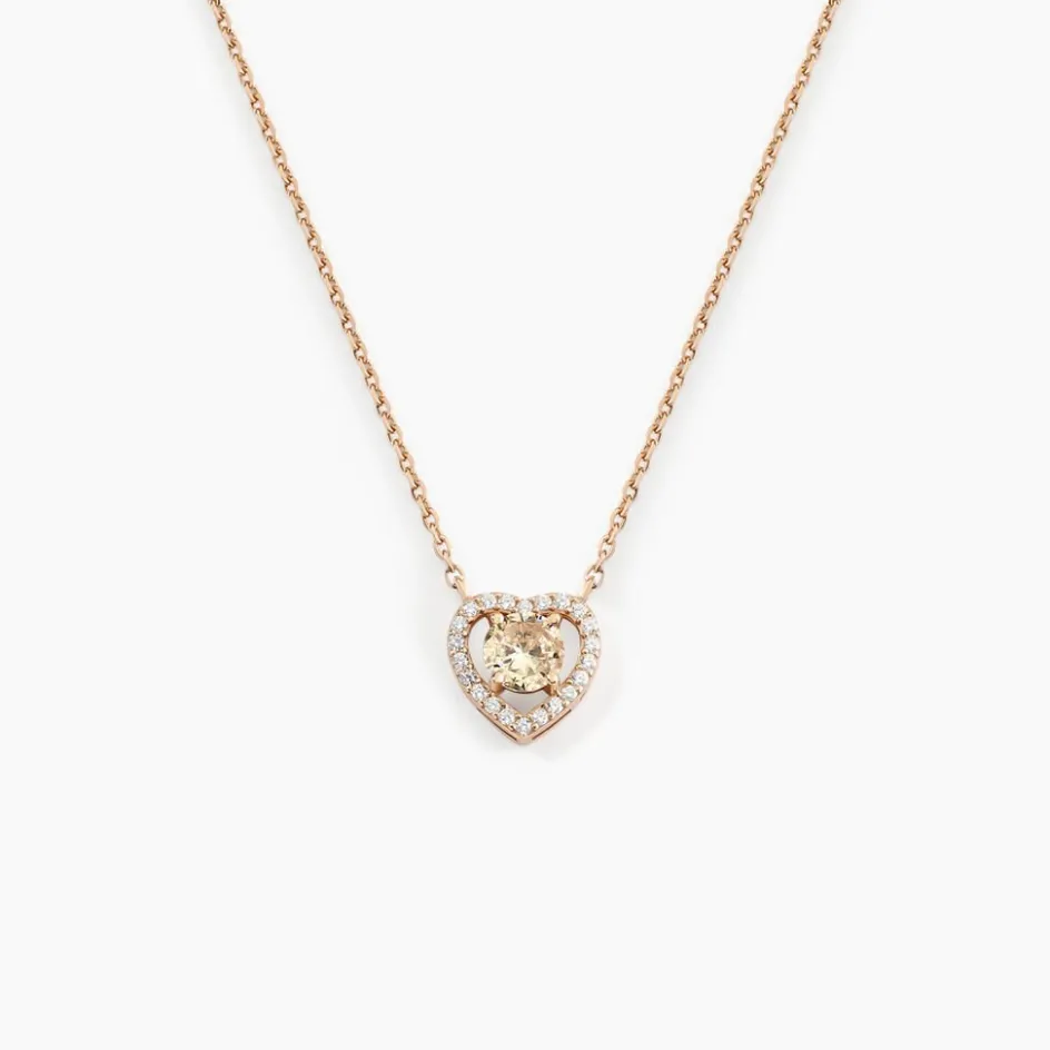 Collier Argent Rose 925/1000 C艙ur Oxyde De Zirconium Champagne Et Pavage Maille Forçat 40+4cm