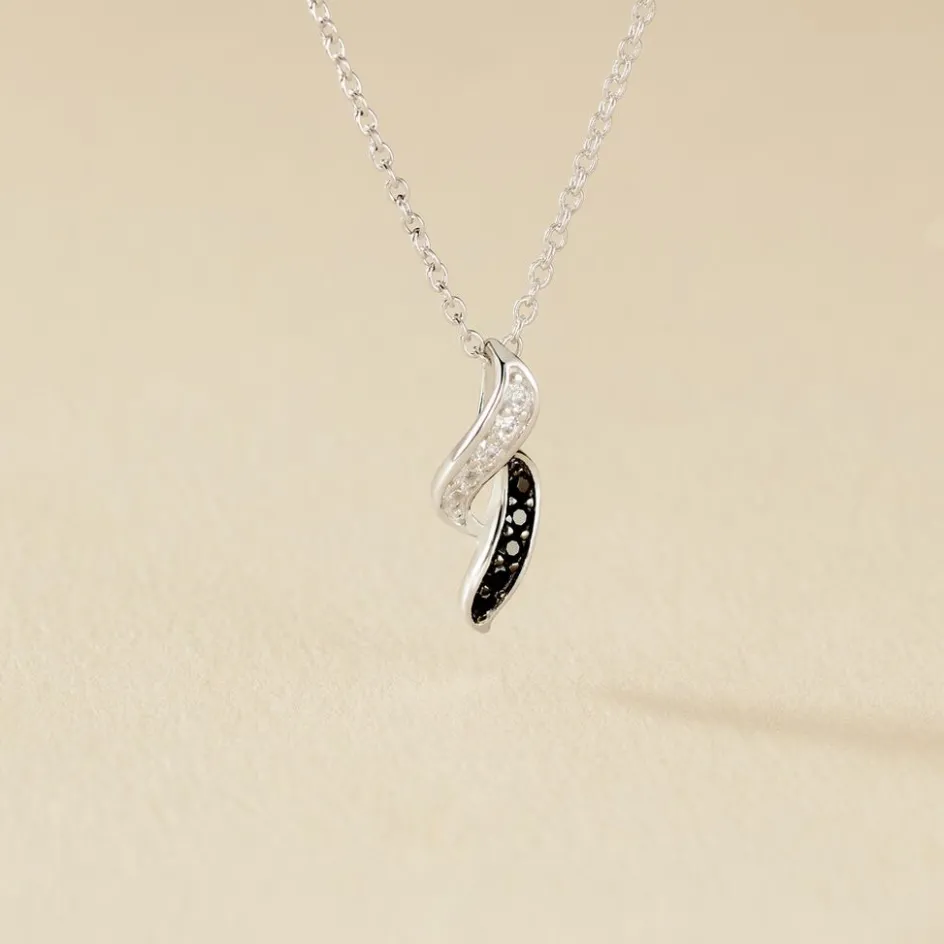 Collier Argent 925/1000 sylvie Vagues Oxydes De Zirconium Noirs Et Blancs