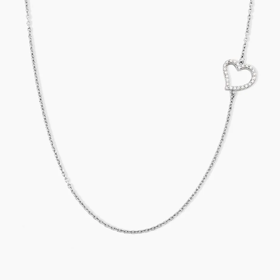 Collier Argent Blanc 925/1000 C艙ur Latéral Pavage Oxydes De Zirconium Maille Forçat 42+3cm
