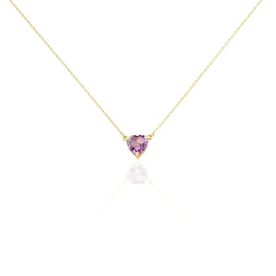 Collier Or Jaune 375/1000 C艙ur Amethyste 0.9cts Serti Griffes Chaine Maille Forcat 40+2cm