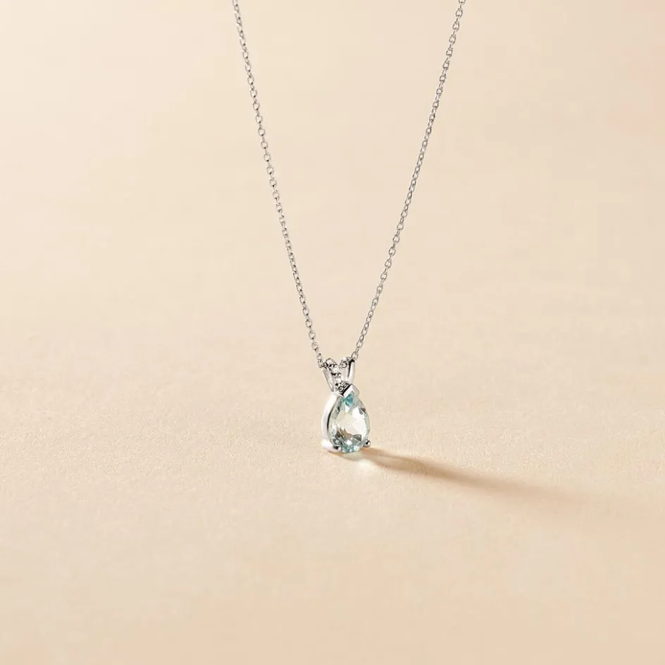 Collier Or Blanc 375/1000 Topaze Forme Goutte Accompagnée Diamants 42cm