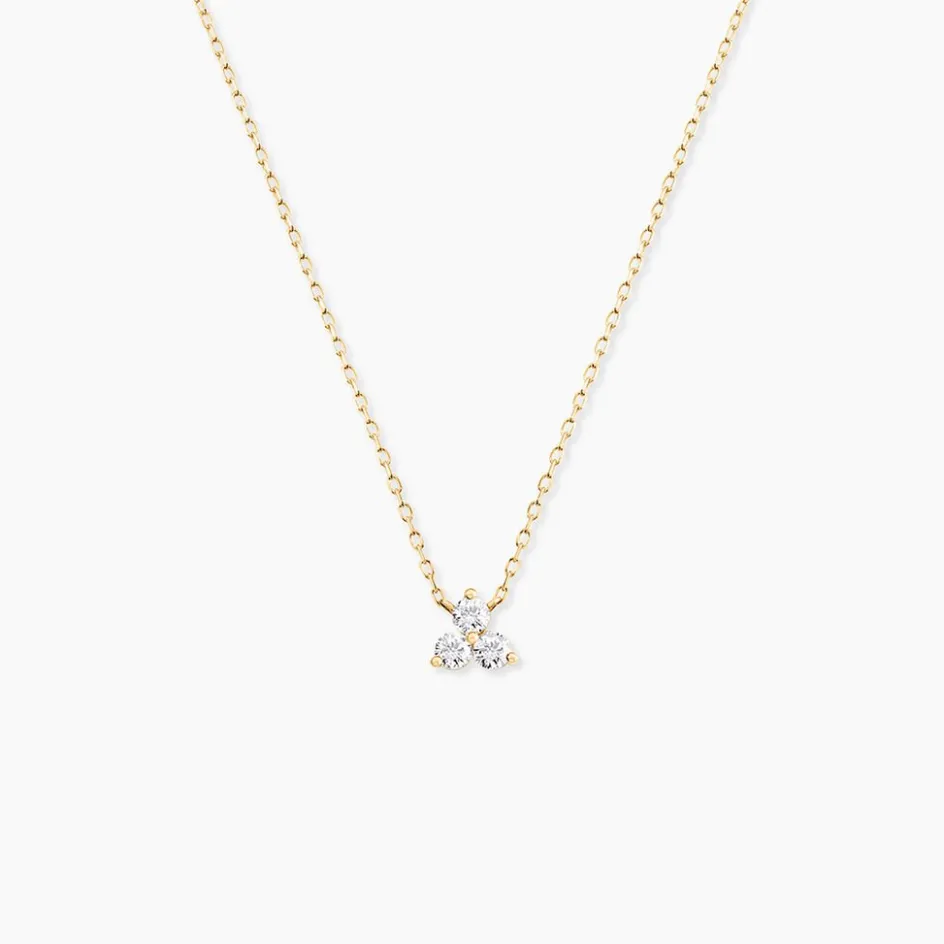 Collier Or Jaune 375/1000 Trilogie Diamant Synthetique 0,192Cts Serti Griffes Maille Forcat 40+2Cm