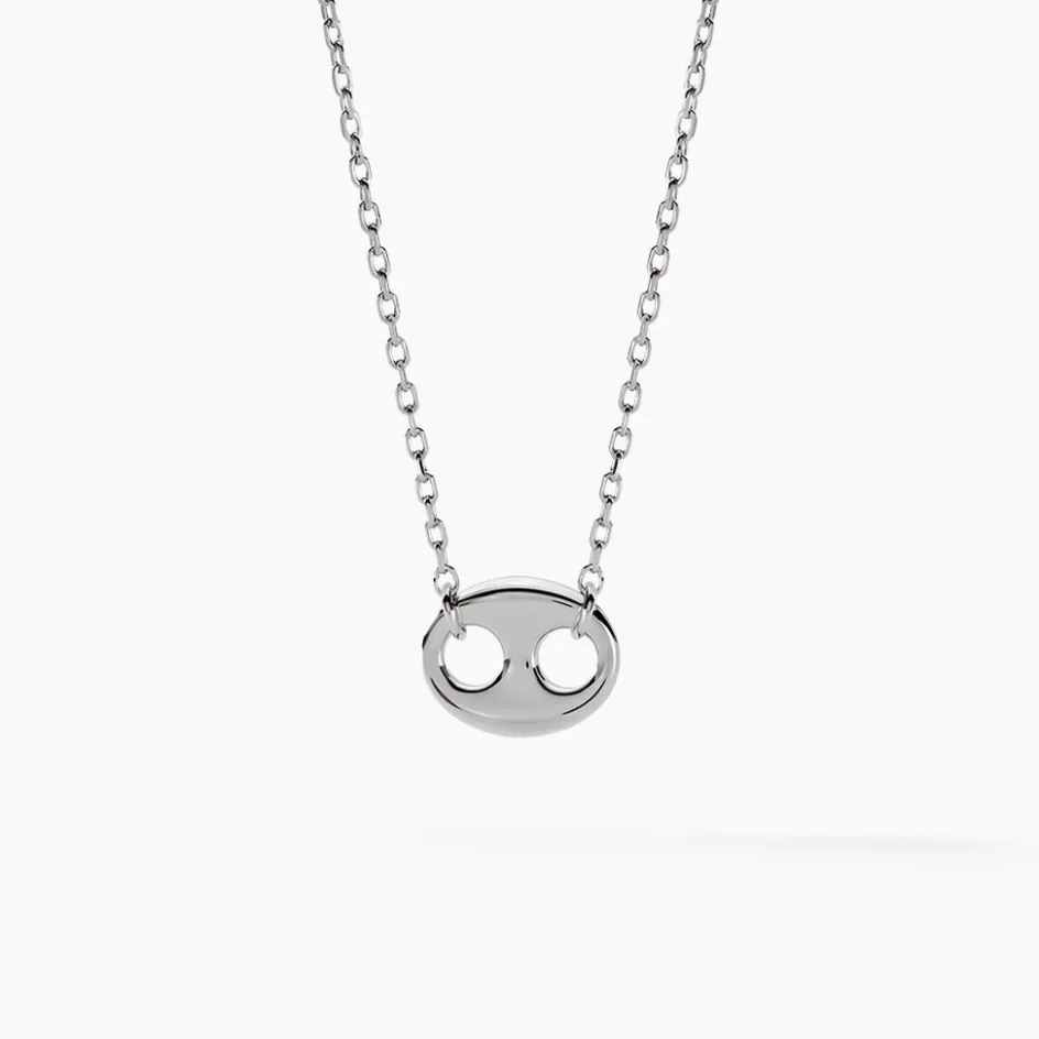 Collier Argent Blanc 925/1000 Motif Grain De Café Maille Forçat 42+3cm