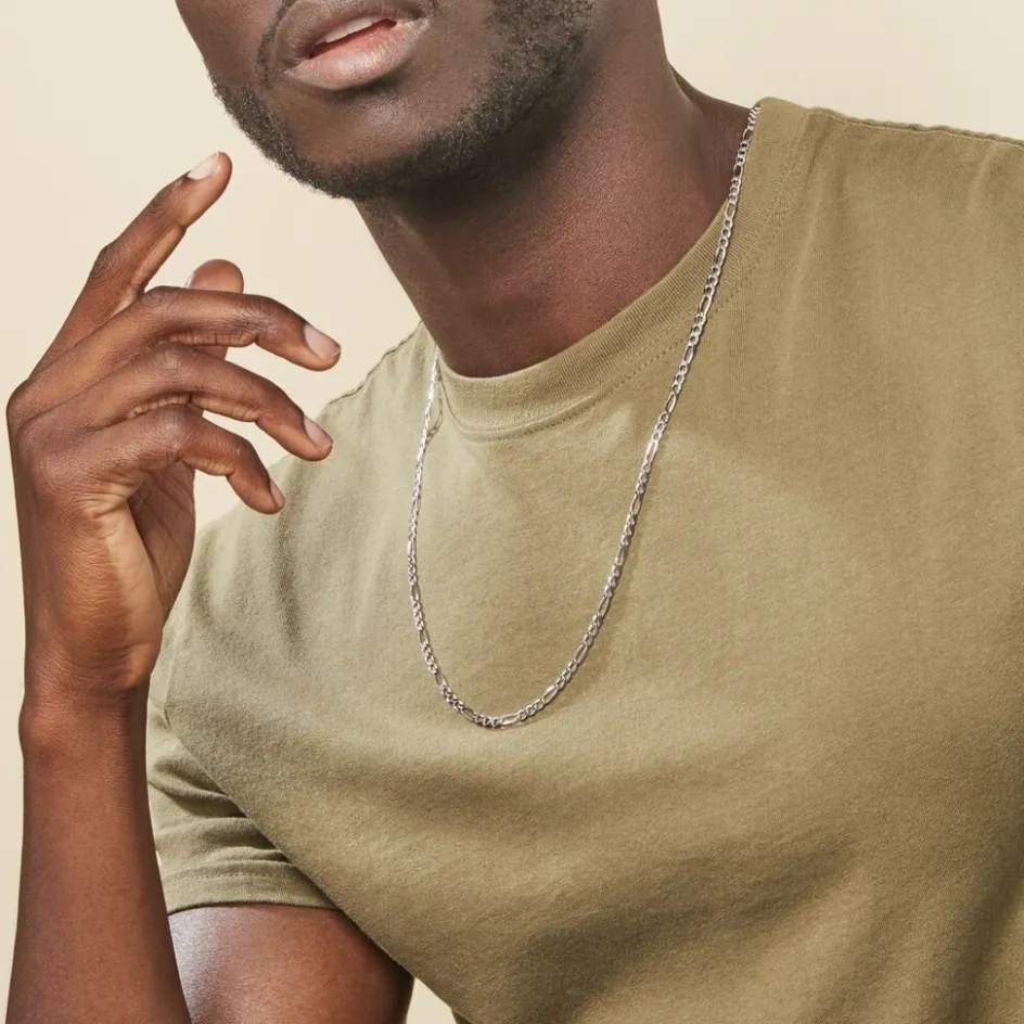 Collier Maille Argent Blanc 925/1000 Maille Alternee 1/3 Largeur 3.9mm 65cm
