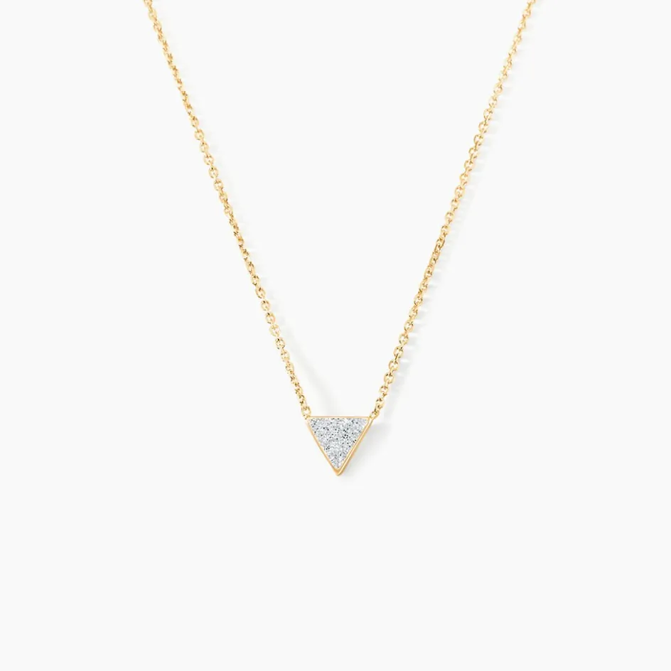 Collier Or Jaune 375/1000 Triangle Glitter Argente Maille Jaseron 40+2cm