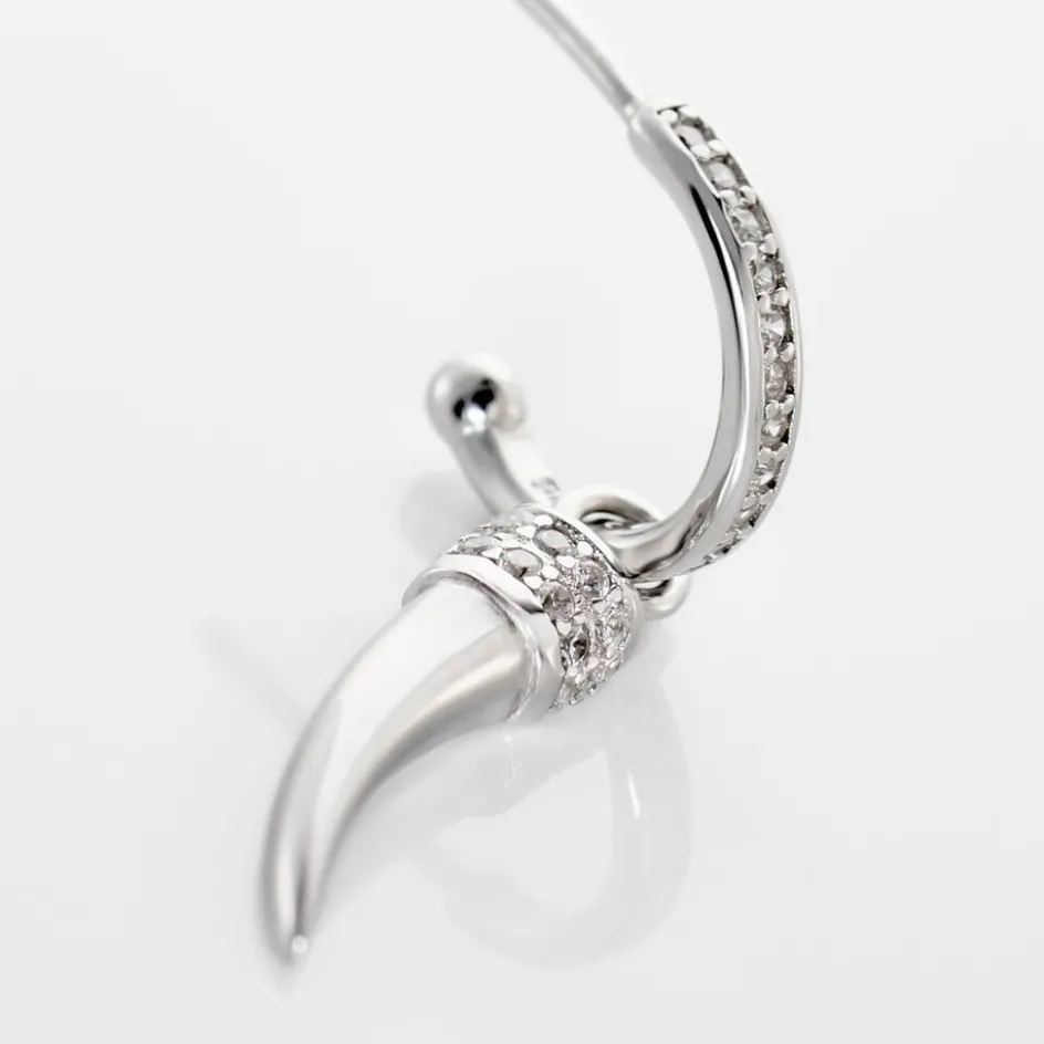 Creole Unitaire Argent Blanc 925/1000 Pampille Corne D’abondance Pavage Oxydes De Zirconium