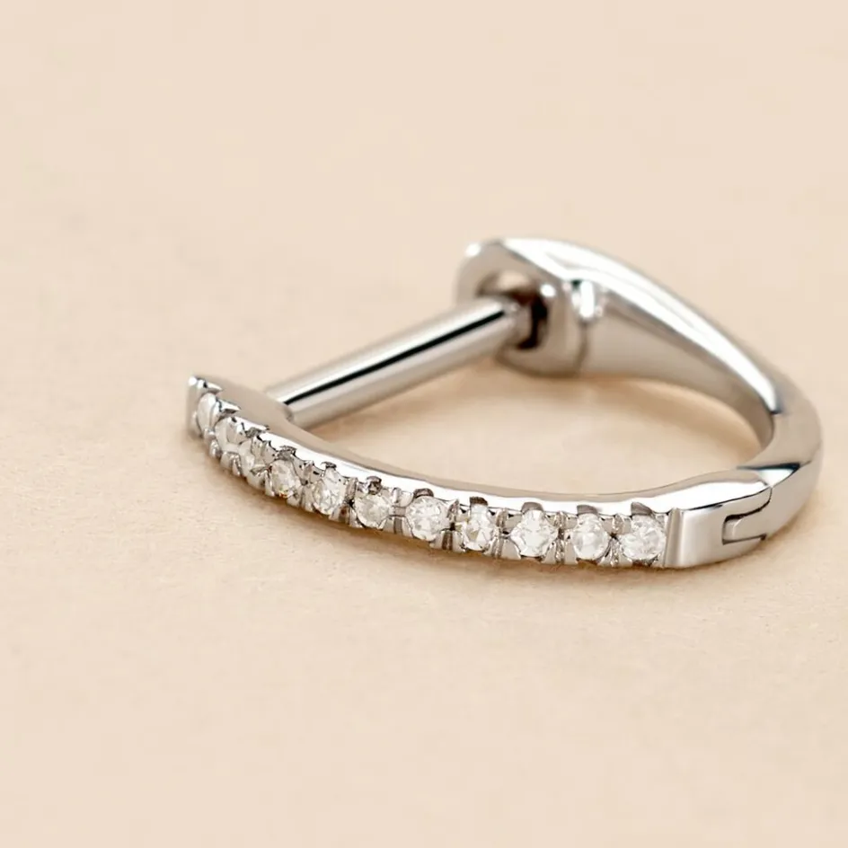 Creole Unitaire Or Blanc 375/1000 Diamants Micro Serti 0.02cts Diametre 9mm