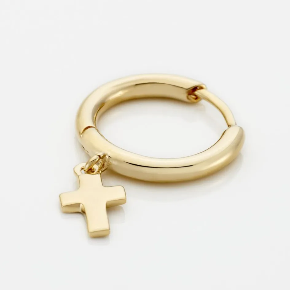 Créole Unitaire Plaqué Or Doré Pampille Croix Diamètre 10mm