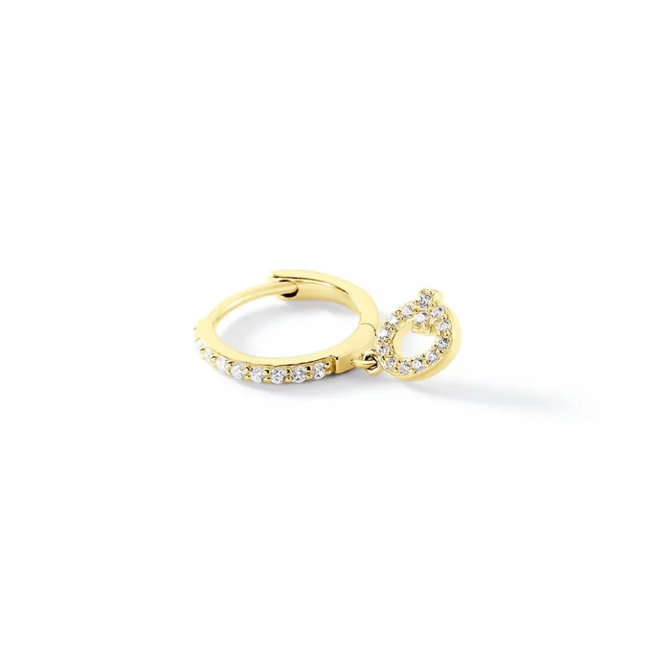Créole Unitaire Q Or Jaune 375/1000 Oxyde De Zirconium Blanc Serti Pavage 8mm