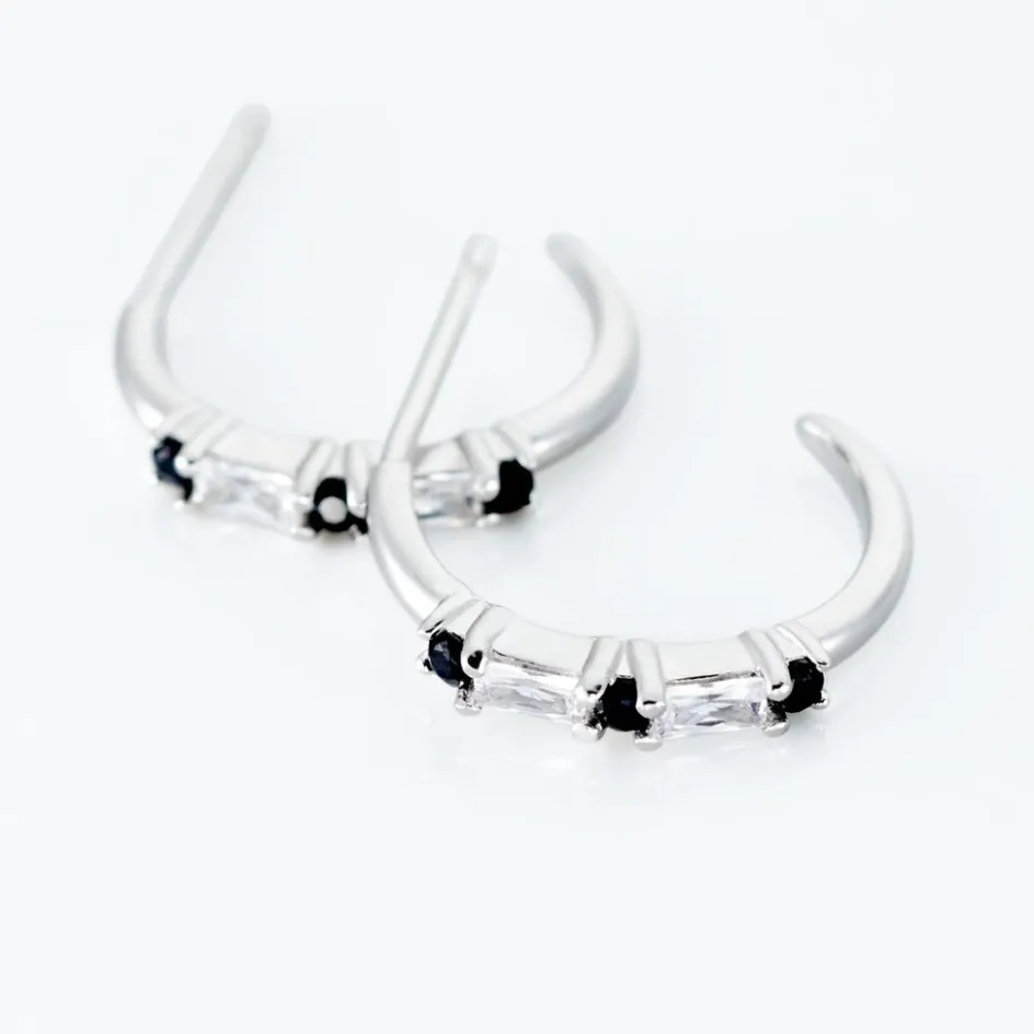 Créoles Argent 925/1000 Oxydes De Zirconium Alternés Noirs Et Blancs