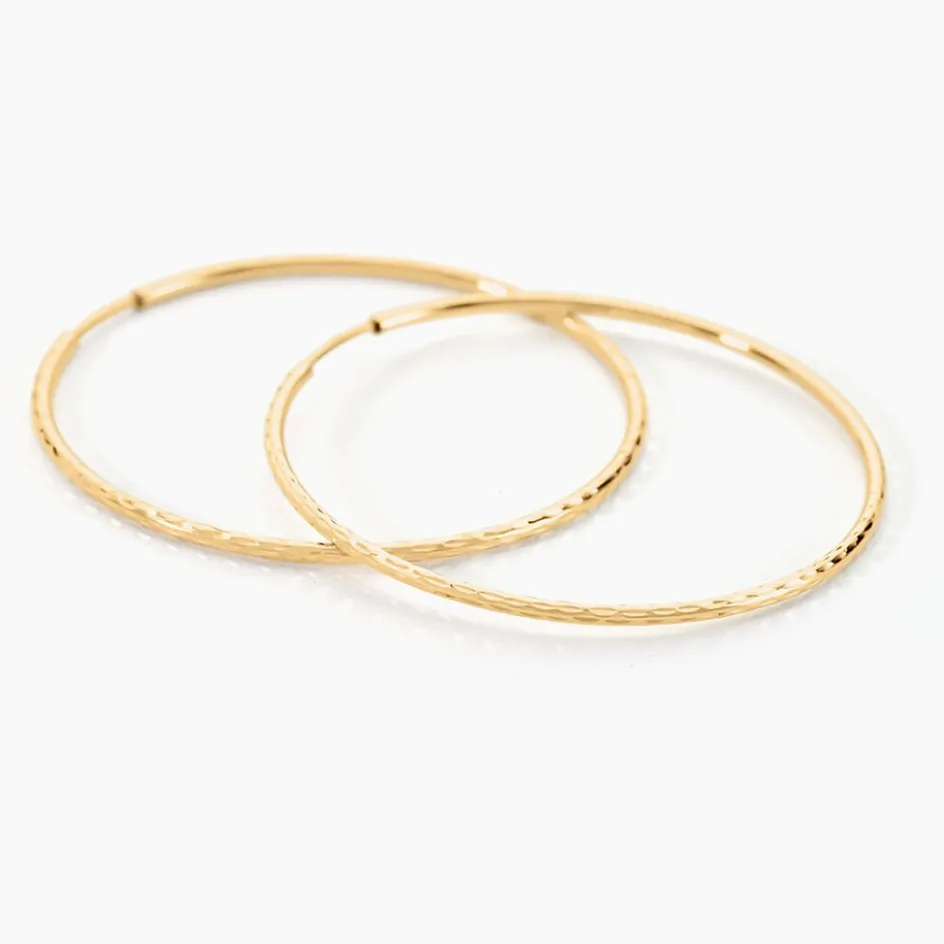 Créoles Or Jaune 375/1000 Flexibles Effet Diamanté Largeur 1.3mm Diametre 40mm