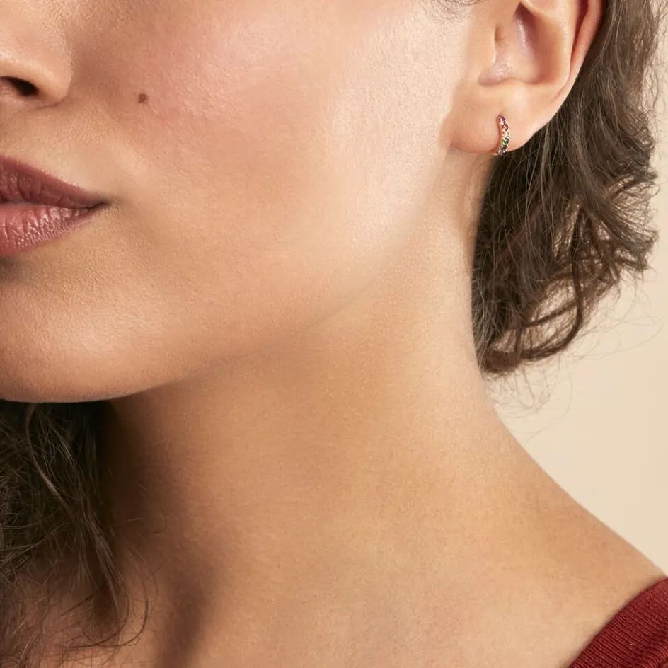 Creoles Or Jaune 375/1000 Pavage Oxydes De Zirconium Multicolores Diamètre 11mm