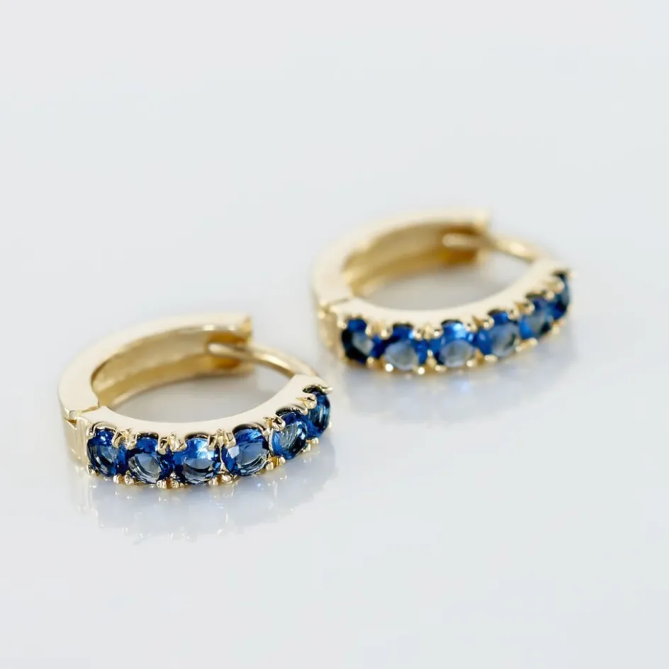 Creoles Or Jaune 375/1000 Serti 4 Griffes Oxydes De Zirconium Bleus