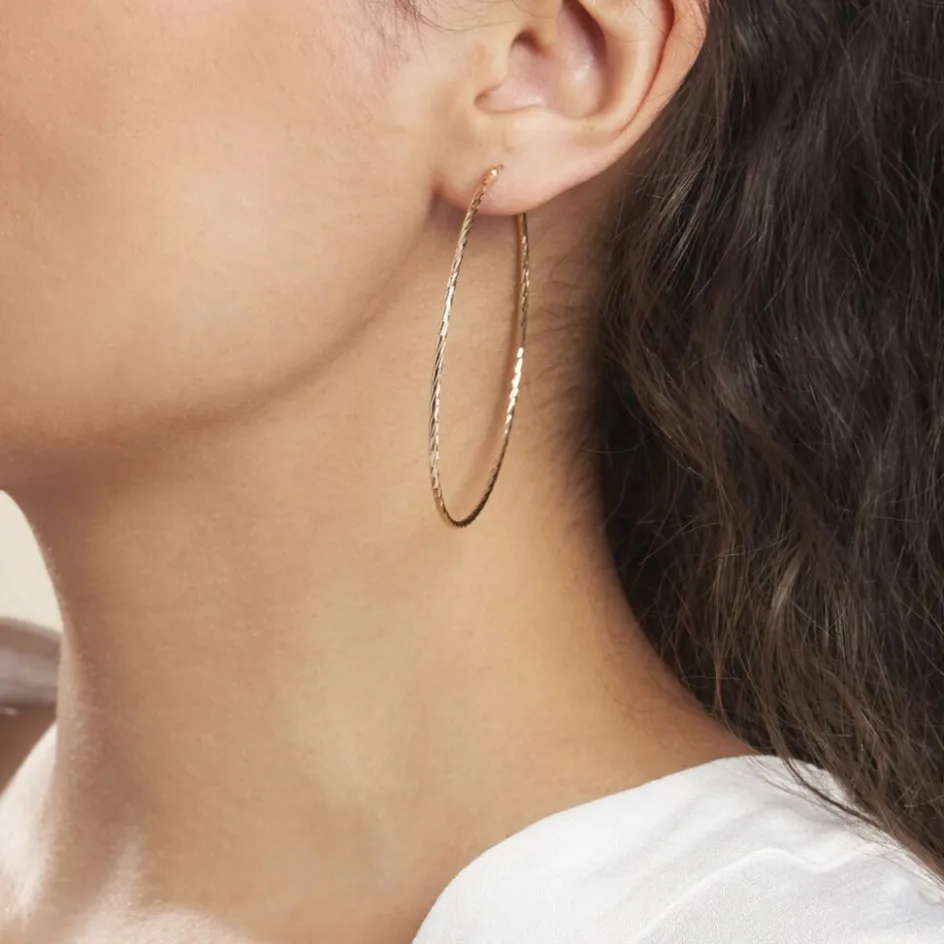 Creoles Plaqué Or Jaune Effet Diamante Diametre 60mm