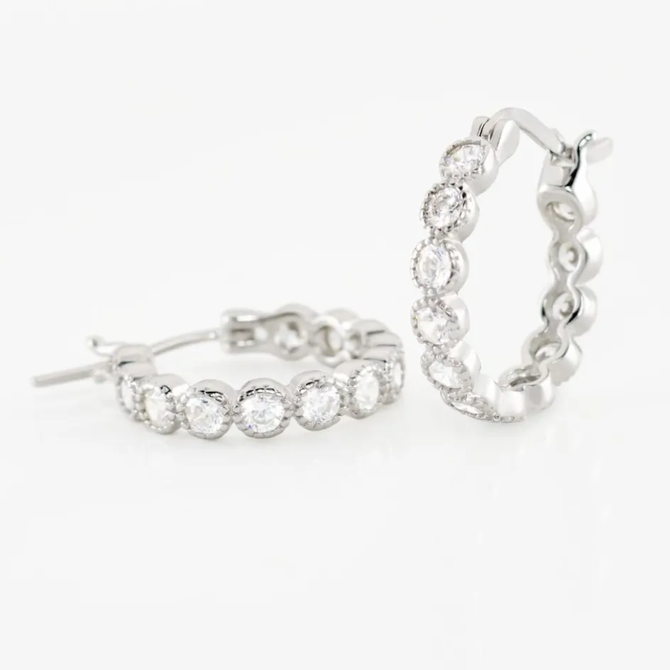 Créoles Argent Blanc 925/1000 Effet Perlé Oxydes De Zirconium Serti Clos Diamètre 18mm