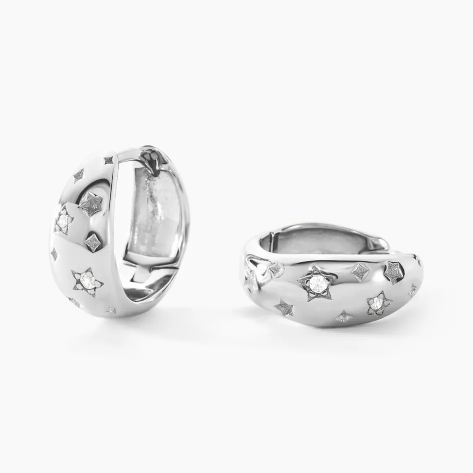 Créoles Argent 925/1000 Bombées étoiles Oxydes De Zirconium Diamètre 9mm