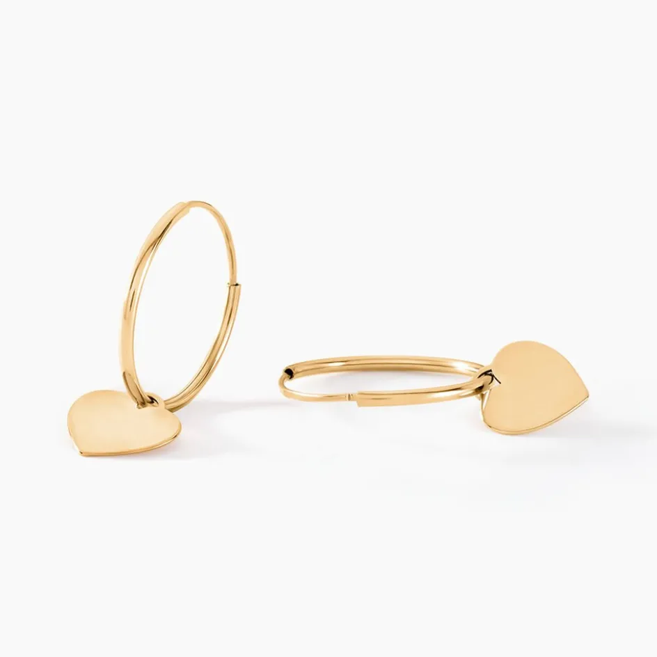 Créoles Or Jaune 375/1000 Pampilles C艙urs Fil Flexible Lisse Largeur 0.8mm Diamètre 11mm