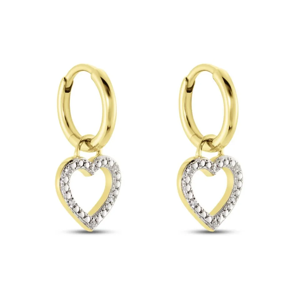 Créoles Or Jaune 375/1000 Pavage Diamants Paimpille Coeur Diametre 8mm