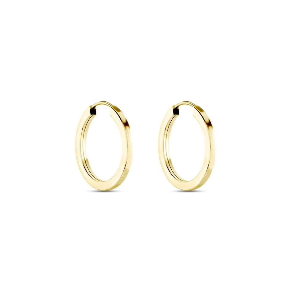 Creoles Or Jaune 375/1000 Fil Flexible Lisse Largeur 1.6mm Diamètre 15mm
