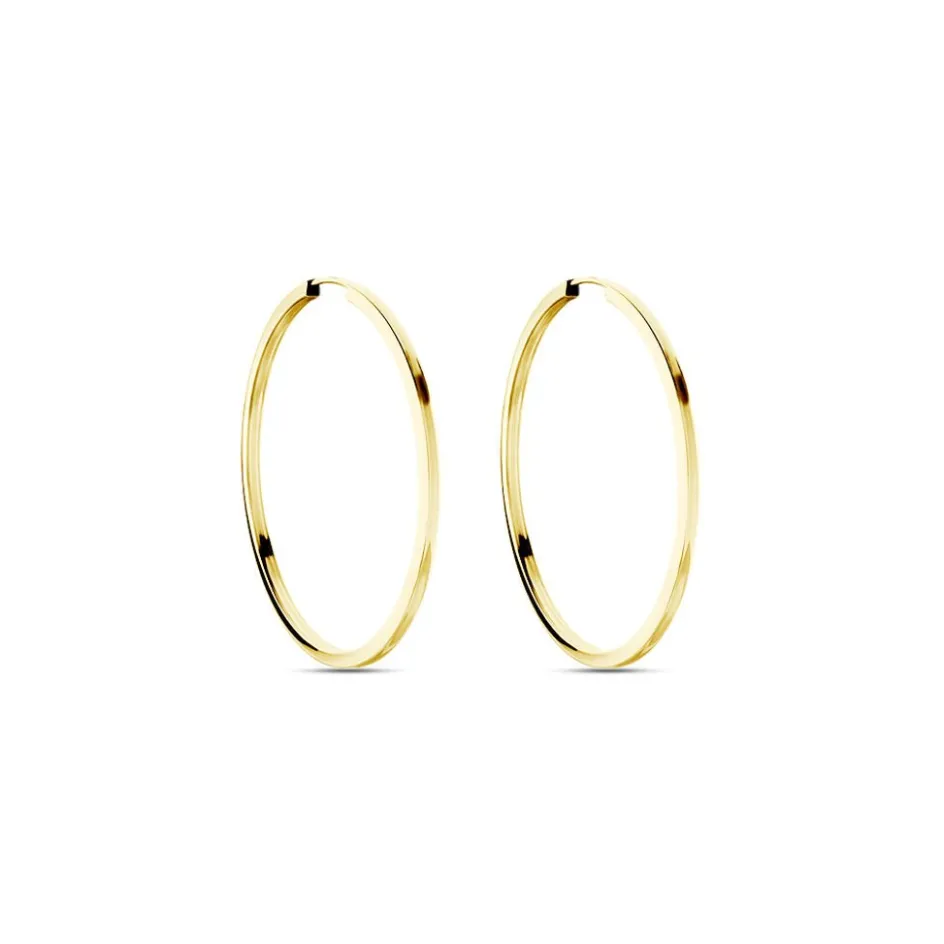 Creoles Or Jaune 375/1000 Fil Flexible Lisse Largeur 1.6mm Diamètre 35mm