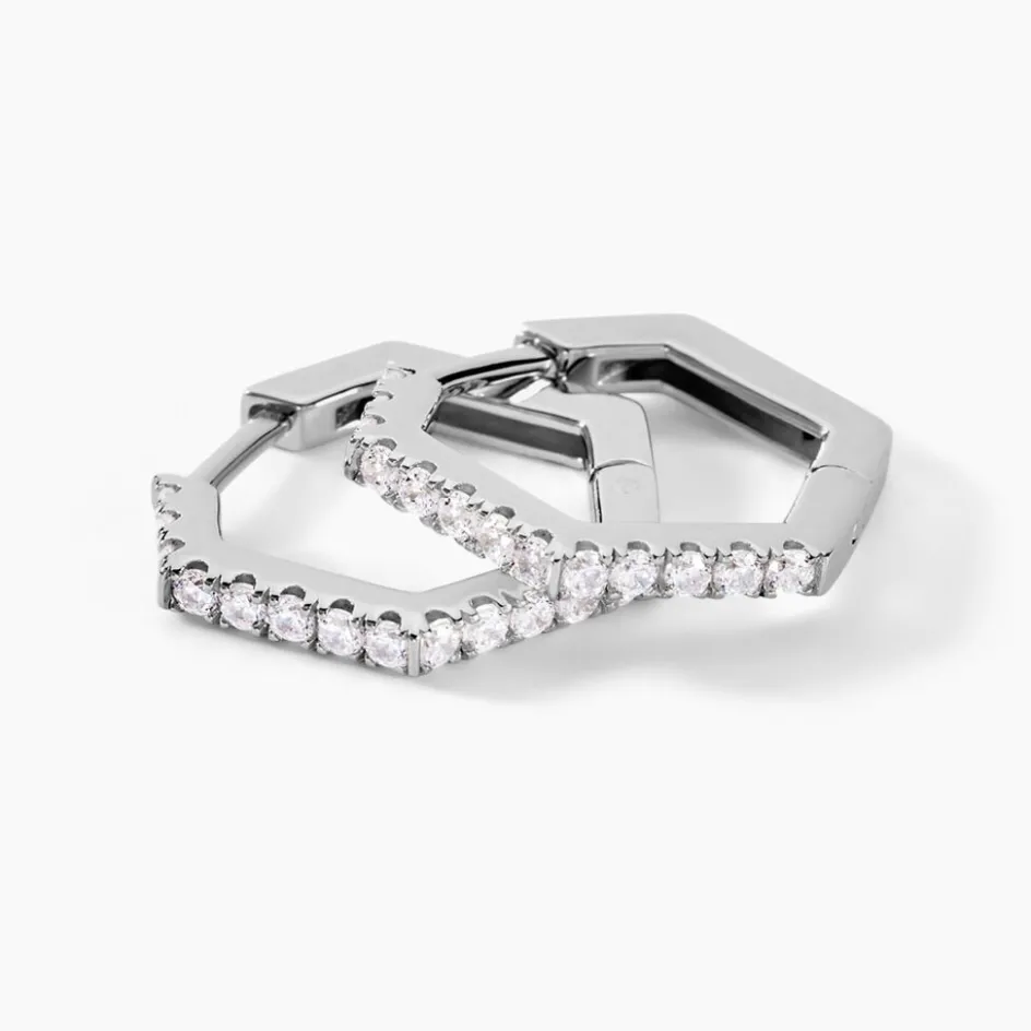 Créoles Argent Blanc 925/1000 Pavage Oxydes De Zirconium Micro Serti Diamètre 10mm