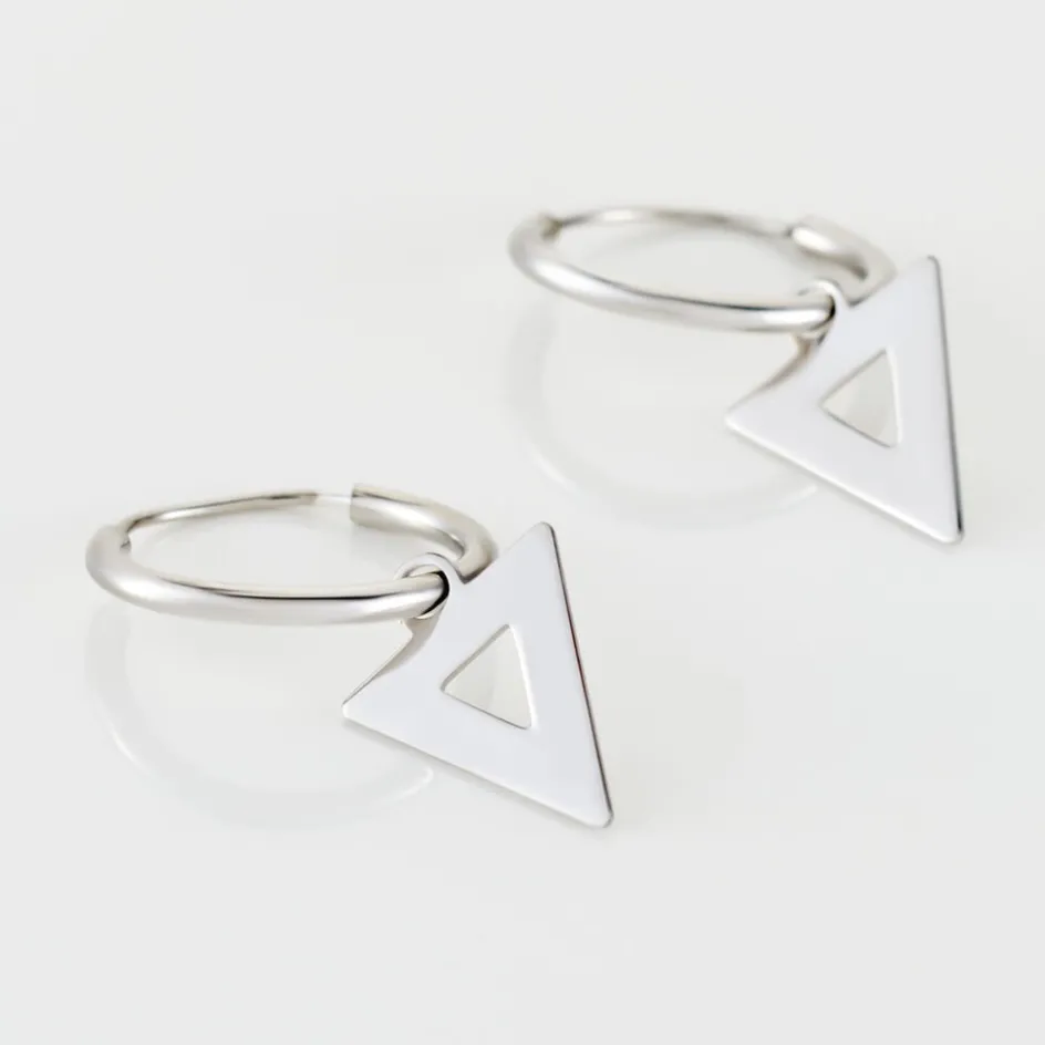 Creoles Argent Blanc 925/1000 Pampilles Triangles Ajoures Diametre 12mm