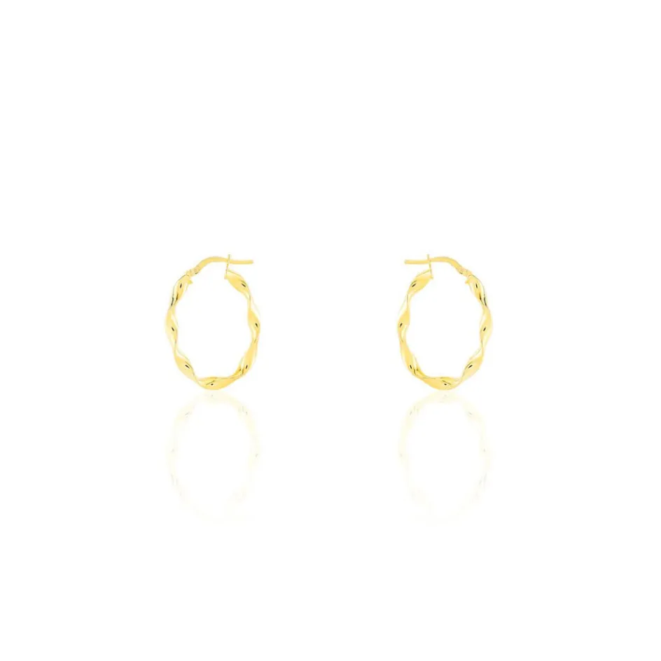 Créoles Or Jaune 375/1000 Ovales Fil Vrillé Largeur 1.5mm Diamètre 23x15mm