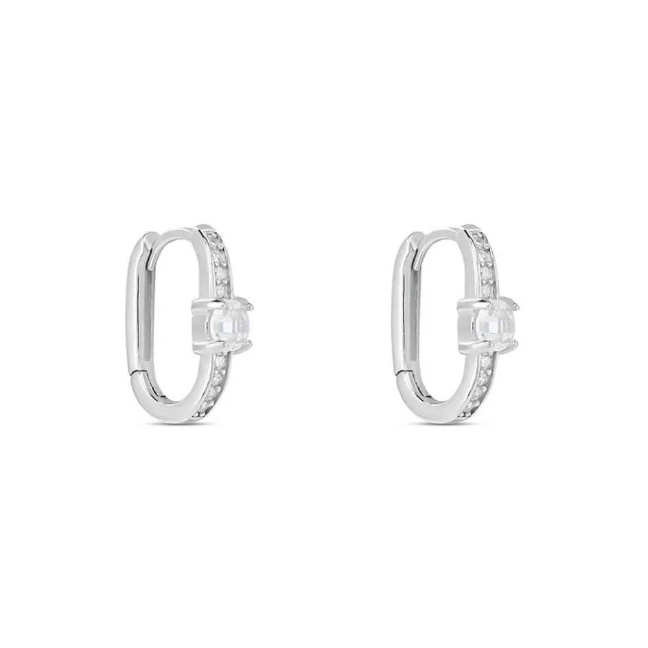Créoles Argent 925/1000 Oxydes De Zirconium Serti 4 Griffes Diamètre 12mm