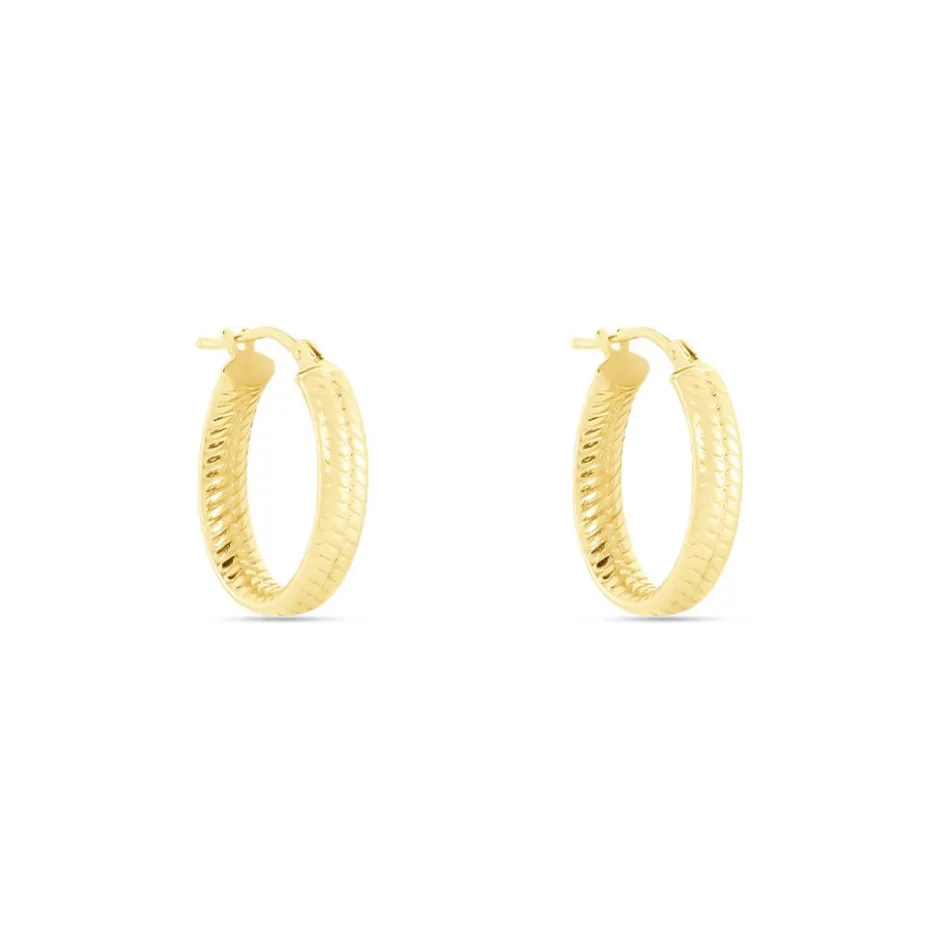 Créoles Or Jaune 375/1000 Ovales Striées Largeur 12.5*18.5mm