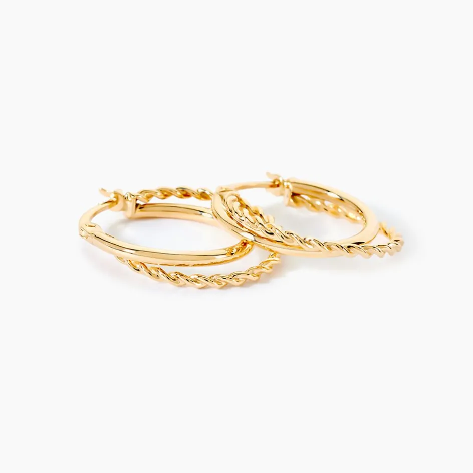 Créoles Or Jaune 750/1000 Double Fil Diametre 14Mm