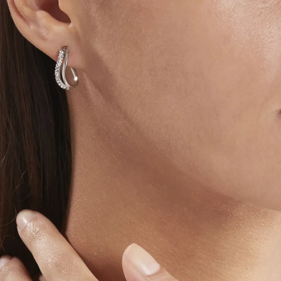 Créoles Or Blanc 375/1000 Deux Fils Carrés Dont Un Fil Avec Strass Largeur 1.4mm Diamètre 15.5×10.9mm