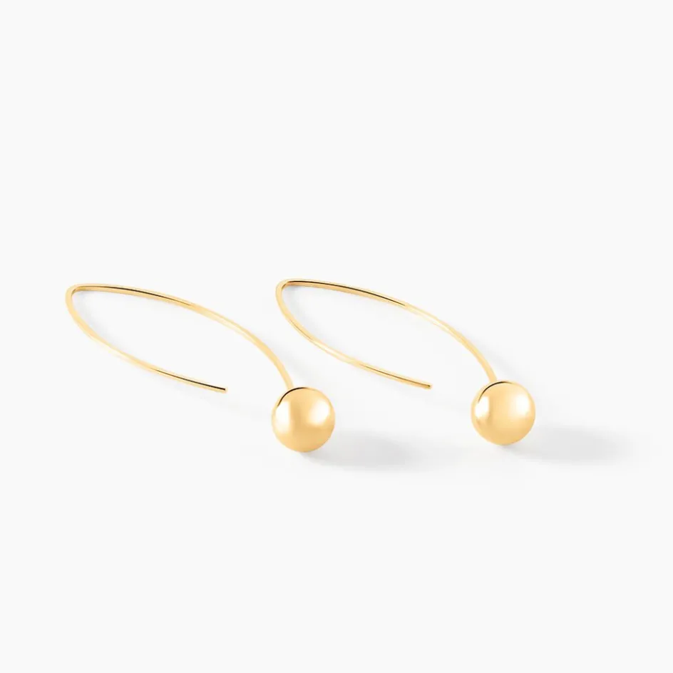 Creoles Or Jaune 375/1000 Ouvertes Forme Amande + Boule Or Diam 40mm