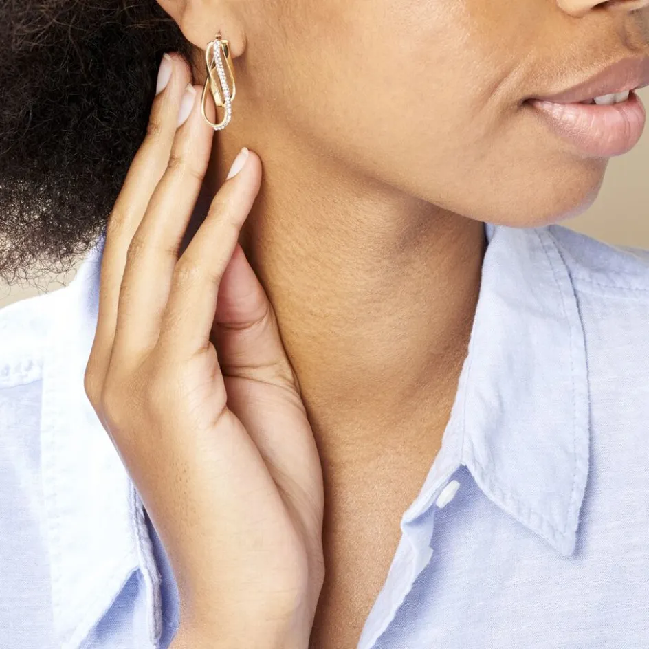 Créoles Or Jaune 375/1000 Trois Fils Carrés Dont 1 Fil Avec Strass Largeur 2mm Diamètre 27x8mm