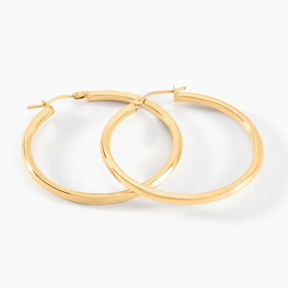 Créoles Or Jaune 375/1000 Fil Triangle Lisse Largeur 2mm Diamètre 30mm